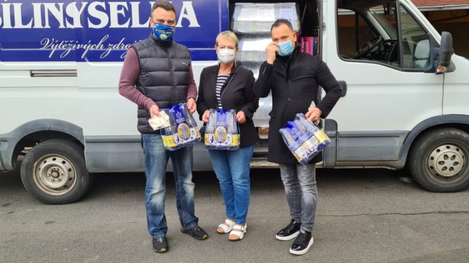 Senioři z Domova důchodců v Bystřanech dostali od teplického fotbalového klubu a Bílinské kyselky minerálky.