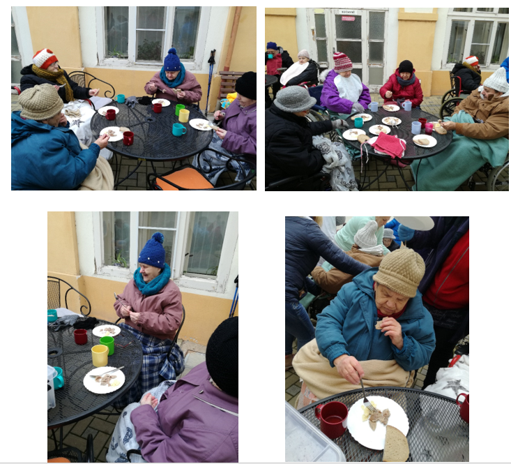 Domácí zabijačka v podání zkušeného řezníka není totiž nějaká nahodilá činnost, a pokud jsou řezník a jeho pomocníci zkušení, je to ten pravý koncert. Zručnost a šikovnost mistrů řezníků byla obdivuhodná. Mnozí senioři vzpomínali na svá mladá léta, kdy se každoročně účastnili domácí zabijačky. Našli se ale i tací, kteří se s tímto řemeslem osobně nesetkali. Proto byli překvapení, když se během vyprávění dověděli například informaci, že v dnešní době se v České republice uskuteční přes 350 tisíc domácích zabijaček. Celé akce se zúčastnilo celkem čtyřiatřicet uživatelů, kteří se přišli podívat osobně. O zabijačkové dobroty ale nebyly ochuzeni ani ti, komu se do mrazivého dne příliš nechtělo. Pochoutky jim byly doneseny na pokoj či jídelnu, kde si je mohli v klidu a teple domova vychutnat. Co by to bylo za zabijačkové hody, kdyby nebyl prejt. Ten mohli uživatelé ochutnat, společně s tlačenkou, následující den.