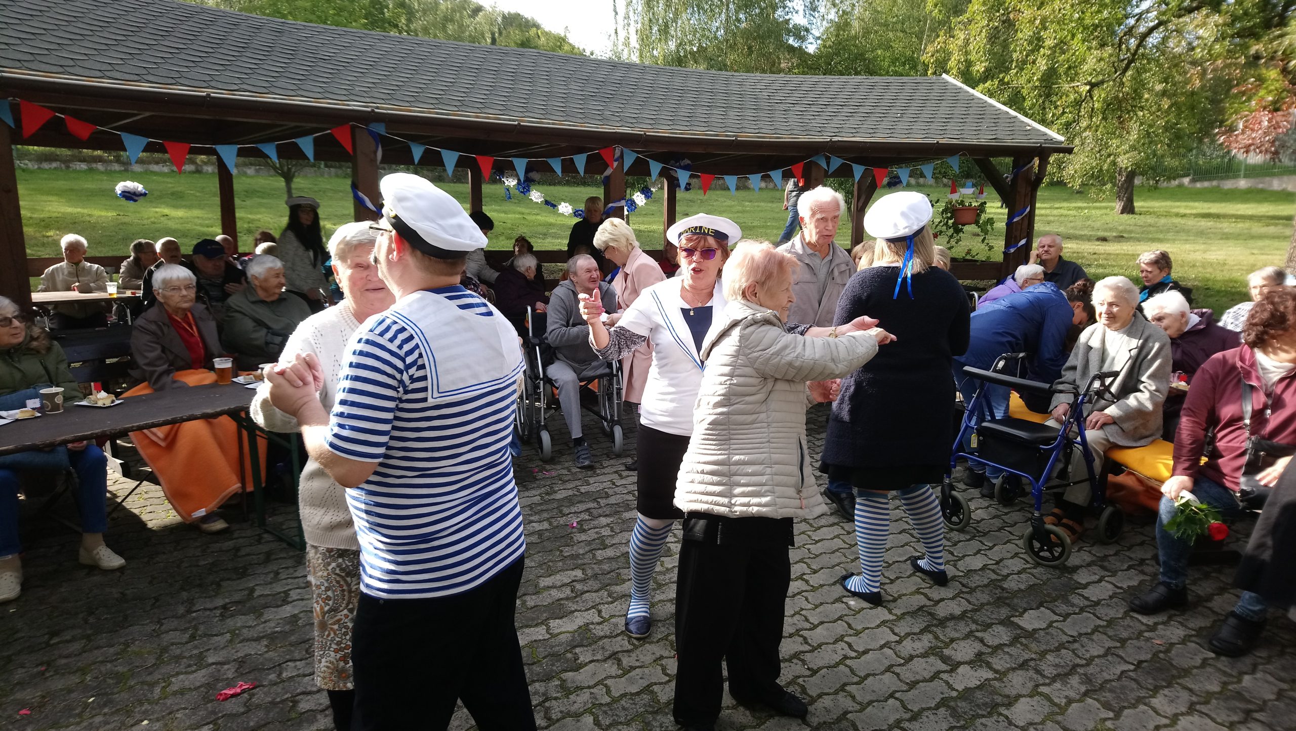 Když jsme již byli u té námořní tematiky, bylo pro nás jasné udělat oslavu v námořnickém duchu. Na palubu jsme tedy nalodili námořníky, námořnice, plavčíky a kapitány a všichni se skvěle bavili při Úletu, který samozřejmě nemohl chybět. Stejně tak nechybělo něco dobrého na chuť, narozeninový dort a nezbytné vystoupení našich vždy dobře naladěných sociálních pracovníků, kteří se ihned dali do tance a předvedli i scénky s námořnickou tématikou. Na závěr si všichni popřáli, aby středisko sloužilo nadále, tak dobře jako dosud, ještě spoustu let.