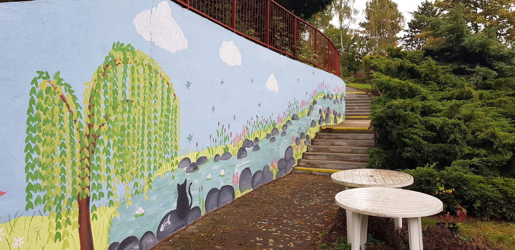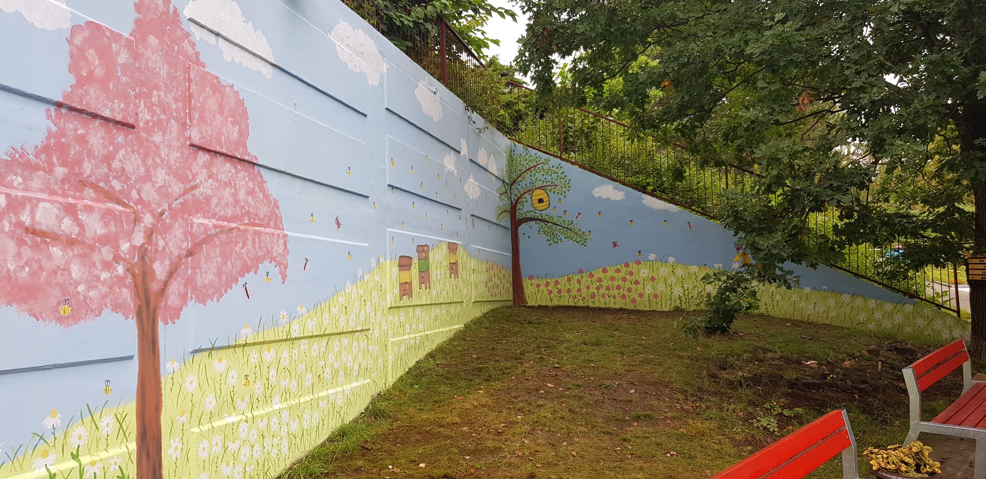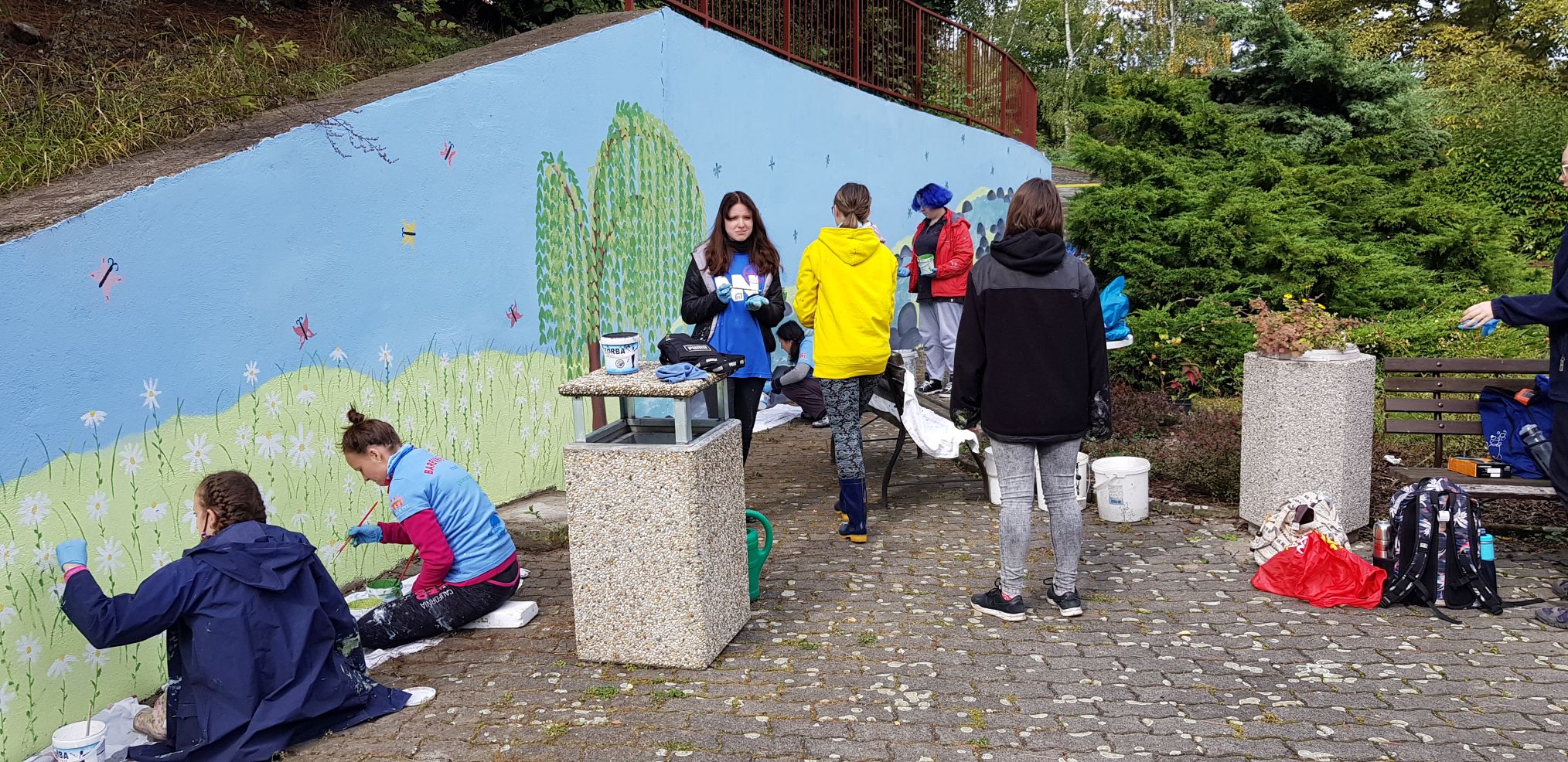 „I přes nepřízeň počasí a omezení kontaktu se seniory domova dokončili žáci první část projektu, zaměřenou na zvelebení venkovního areálu. Nevzhledné betonové zdi, na které klienti domova, mnohdy již upoutaní na lůžku, po většinu svého dne hledí ze svých pokojů a kudy ostatní senioři prochází na zahradu, rozkvetly pod rukama žáků 8. a 9. ročníků,“ popisuje jedna z pedagožek Michaela Brablecová.