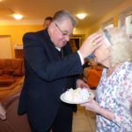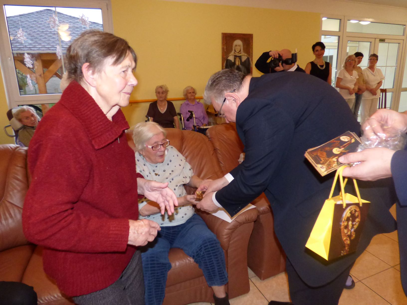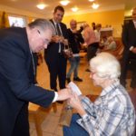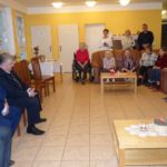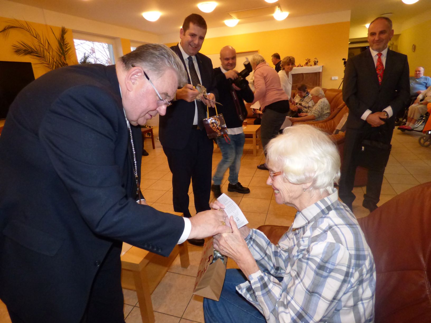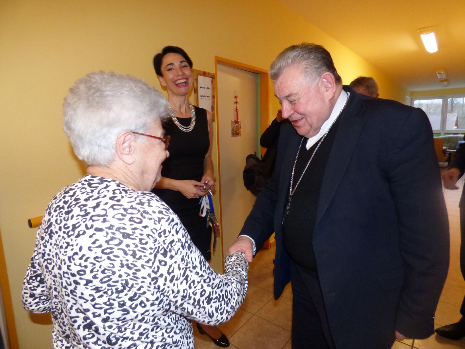 Po prohlídce domova a návštěvě na pokojích těch uživatelů, kteří se ze zdravotních důvodů nemohli zúčastnit společného setkání, proběhlo posezení a diskuze. Pan kardinál dal všem zájemcům požehnání a obdaroval je svatými obrázky a přívěsky na památku.