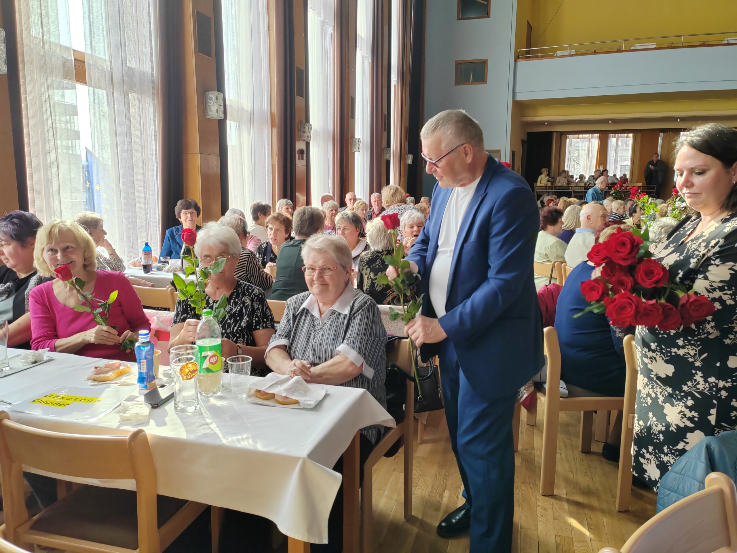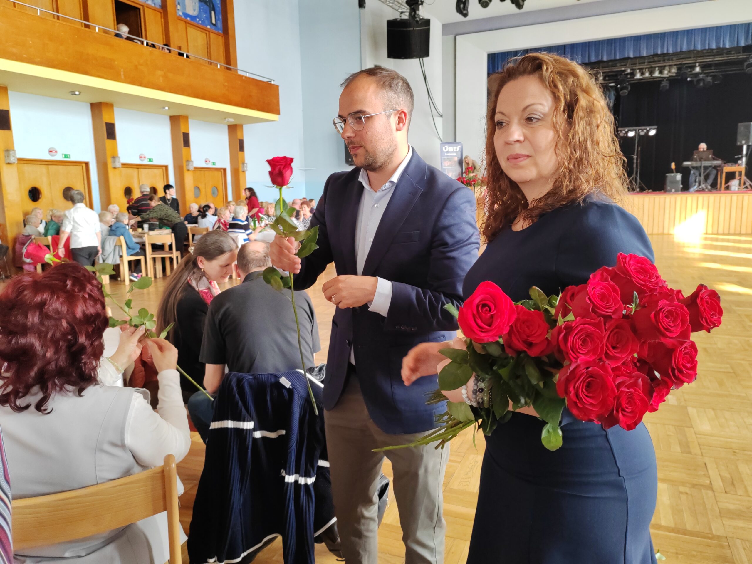 Do Domu kultury dorazilo také vedení města. Všem přítomným popřáli příjemnou zábavu a ženám vše nejlepší k jejich svátku. Každá žena v sále obdržela růži.
