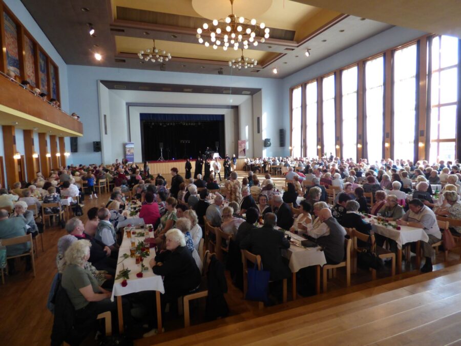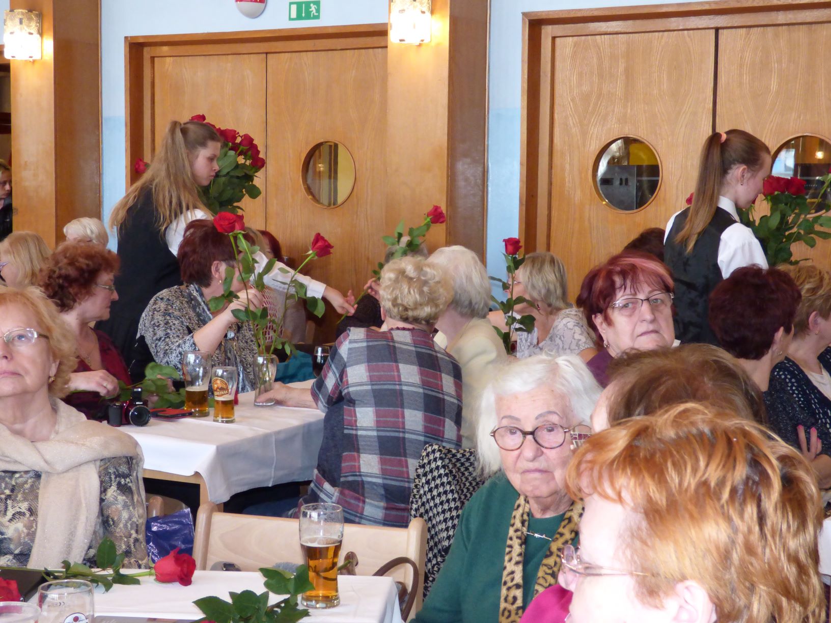 Mezinárodní den žen oslavili ústečtí senioři i v letošním roce velkou akcí v kulturním domě. Sál, ve kterém se jen těžko hledalo volné místo a museli se otevřít i balkony, patřil ale i mužům a dětem z ústeckého DDM, které zde pro seniory vystupovaly. Ty pak všem ženám v sále předaly růže.