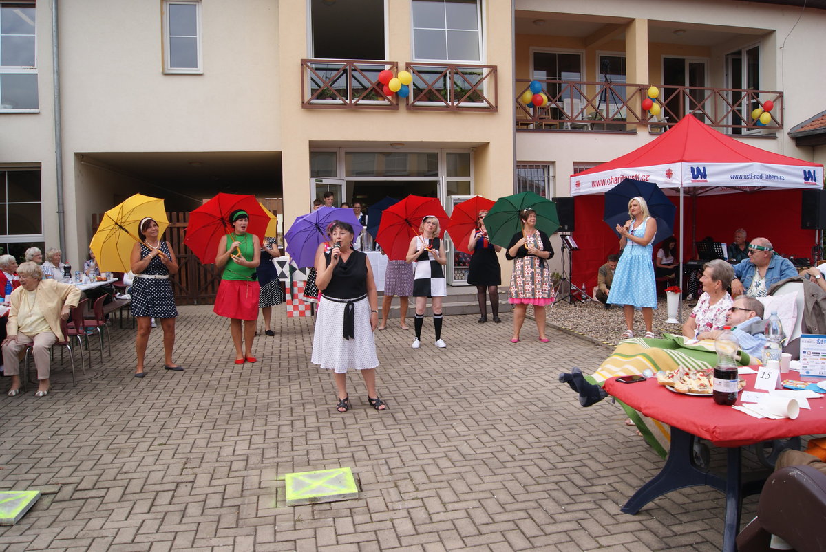 Uvolněná atmosféra vládla celým odpolednem, uživatelé Domu pokojného stáří svaté Ludmily si mohli dopřát nejen občerstvení a hudbu, kterou obstarala skupina O. L. I., ale také spoustu zábavy a bohatou tombolu. Své umění přijely předvést břišní tanečnice Studia Karima z Ústí nad Labem, barmanskou show předvedl pan Martin Vogeltanz. Naši zaměstnanci si také připravili vystoupení.