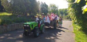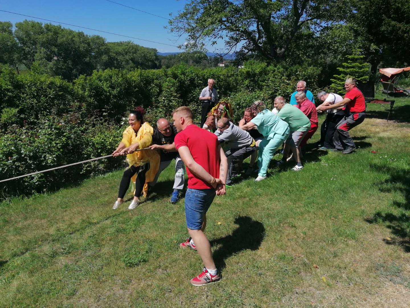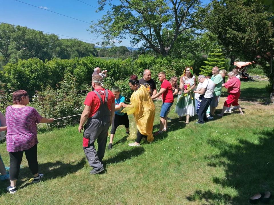 Zaměstnanci domova si pro nás připravili mnoho zábavy a soutěží. Prokousavali jsme se koláčem, řezali majku, přetahovali se lanem, házeli podkovou štěstí a mnoho dalšího.