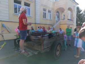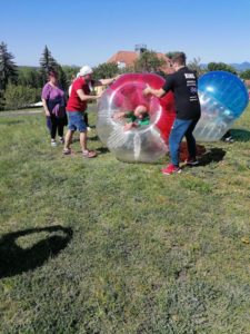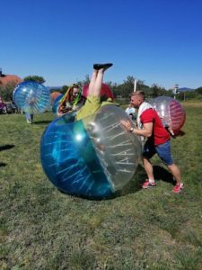 Poté na nás čekalo velké překvapení, který pro nás připravil pan Jaroslav Lauermann. Dovezl na do domova bubble míče, ve kterých jsme se pořádně vyřadili. Jako na správné oslavě nesmělo chybět občerstvení a pořádná muzika, která to dovedla k dokonalosti.