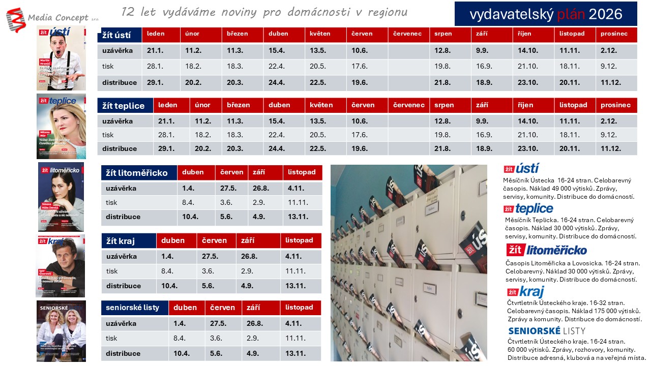 Kontakt distribuce, inzerce a mediální partnerství: Mgr. Miroslav Pakosta, miroslav.pakosta@mediaconcept.cz, tel. 602 464 749