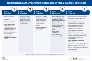 Vláda představila plán uvolňování mimořádných omezení. Postupně se budou v dubnu otevírat farmářské trhy, autobazary a autosalony, následovat budou menší provozovny. V květnu pak posilovny, autoškoly, kadeřnictví nebo ZOO bez pavilonů. V červnu pak komplet restaurace nebo divadla a zámky. Přehledný přehled najdete níže.