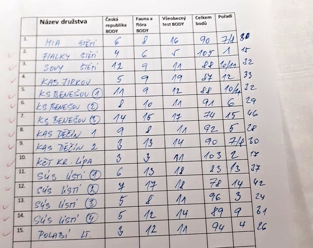 Na soutěžící čekaly tři tématické okruhy, přesněji Fauna a flora, Česká republika a Všeobecné znalosti s celkem čtyřiceti otázkami. Nejlépe se jich zhostilo uskupení Fialky ze Štětí, druzí byli turisté z Krásné Lípy a třetí pak SÚS Ústí nad Labem 3. „Doufáme, že se kvízování všem líbilo a že se tato soutěž stane tradicí,“ věří šéfka klubu štětských turistů Helena Krejčová.