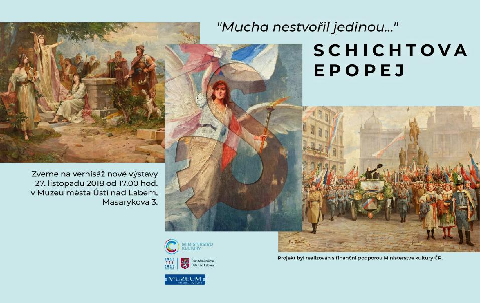 Na dvě desítky velkoplošných pláten se zlomovými okamžiky české státnosti nechali k desátému výročí Československa roku 1928 namalovat němečtí továrníci z Ústí nad Labem Georg a Heinrich Schichtovi. Kopie darovali všem školám v republice jako výukové pomůcky pro dějepis. „Některé z motivů dodnes platí za ikonické obrazy našich dějin, aniž by přetrvalo povědomí o jejich původu. Totálně zapomenutá a zčásti ztracená Schichtova epopej musela počkat na své znovuobjevení až do roku 2018, kdy si připomínáme sté jubileum republiky často právě nejznámějším obrazem z cyklu, a to příjezdem T. G. Masaryka na Václavské náměstí od Emanuela Boháče,“ poznamenal historik Martin Krsek, kurátor výstavy.