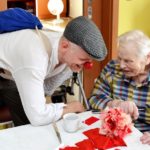 Chtělo by se říci, že klaun jako takový patří spíše k dětem. Budiž. Kousek toho dítěte si ale každý z nás s sebou nese celý život. A ruku na srdce, kdo by alespoň na okamžik nechtěl být znovu tím bezbranným človíčkem, neřešícím žádné problémy a starosti, které přináší život dospěláků. A jestliže by platilo, že v seniorském věku se člověk vrací tak trochu na začátek, je zdravotní klaun mezi dříve narozenými na správném místě. Zapomeňme na pestrobarevné paruky, zabělené obličeje, rudě namalovaná ústa, kostkované oblečení a hurónský smích mnohdy spíše děsivý, než legrační. Klaun s přízviskem zdravotní je ve své podstatě a s přimhouřením jednoho očka oděn civilně a odlišuje se od ostatních pouze v úvodu zmíněným červeným nosem. Přidá velkou dávku empatie, pochopení, bezelstný úsměv a recept s názvem „Pohodový den“ je na světě.