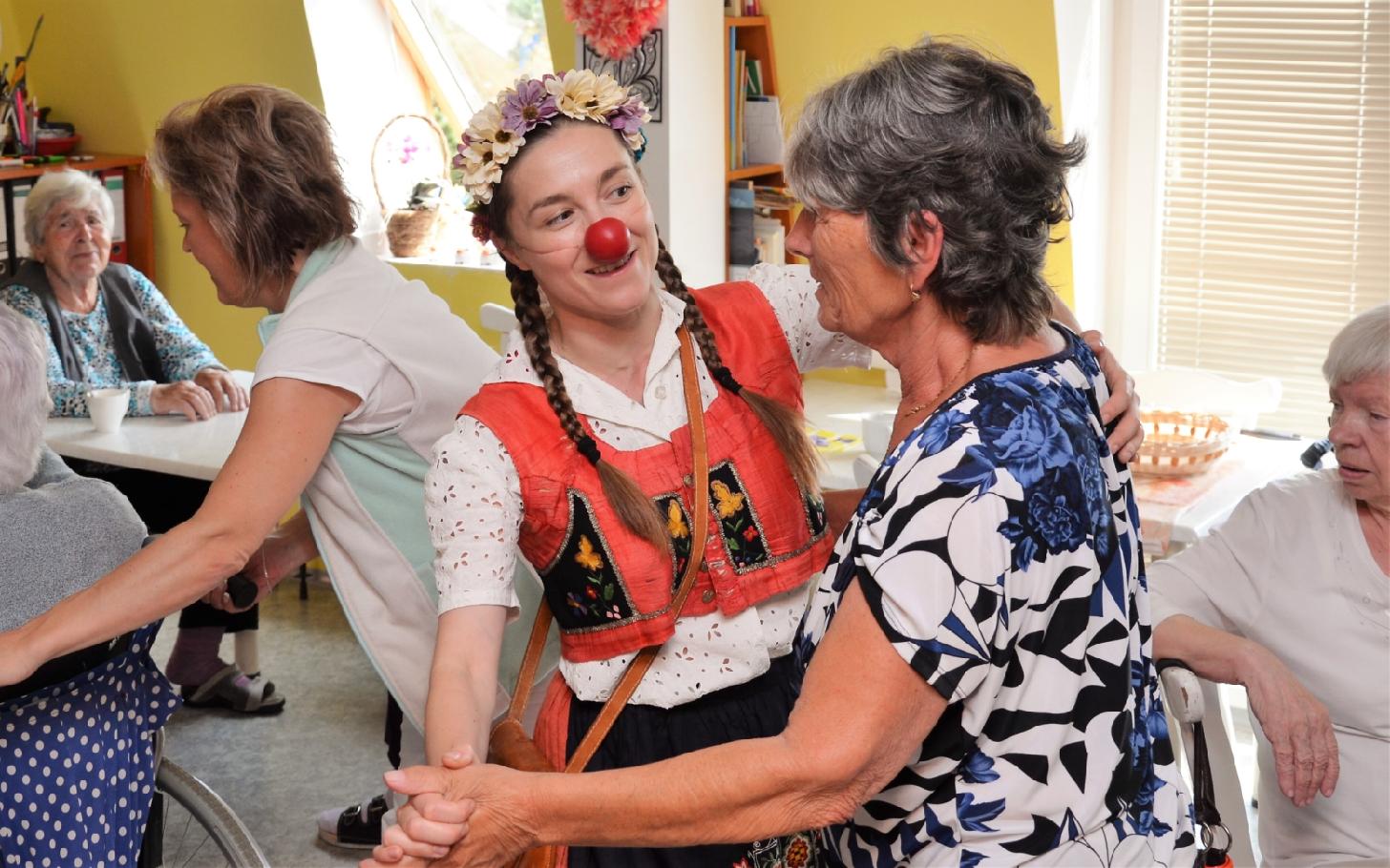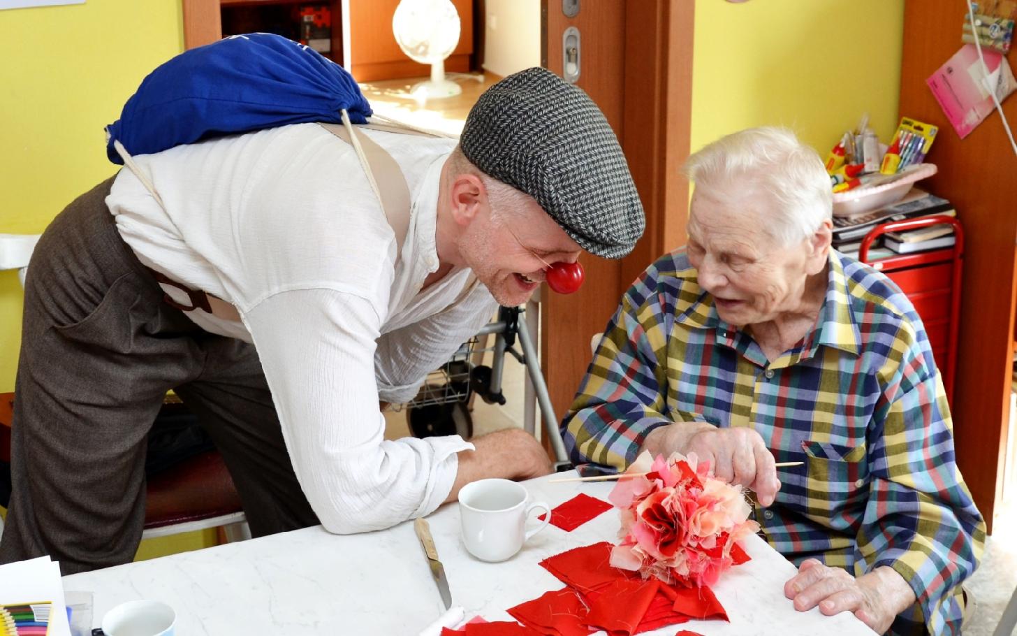Chtělo by se říci, že klaun jako takový patří spíše k dětem. Budiž. Kousek toho dítěte si ale každý z nás s sebou nese celý život. A ruku na srdce, kdo by alespoň na okamžik nechtěl být znovu tím bezbranným človíčkem, neřešícím žádné problémy a starosti, které přináší život dospěláků. A jestliže by platilo, že v seniorském věku se člověk vrací tak trochu na začátek, je zdravotní klaun mezi dříve narozenými na správném místě. Zapomeňme na pestrobarevné paruky, zabělené obličeje, rudě namalovaná ústa, kostkované oblečení a hurónský smích mnohdy spíše děsivý, než legrační. Klaun s přízviskem zdravotní je ve své podstatě a s přimhouřením jednoho očka oděn civilně a odlišuje se od ostatních pouze v úvodu zmíněným červeným nosem. Přidá velkou dávku empatie, pochopení, bezelstný úsměv a recept s názvem „Pohodový den“ je na světě.