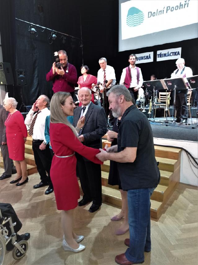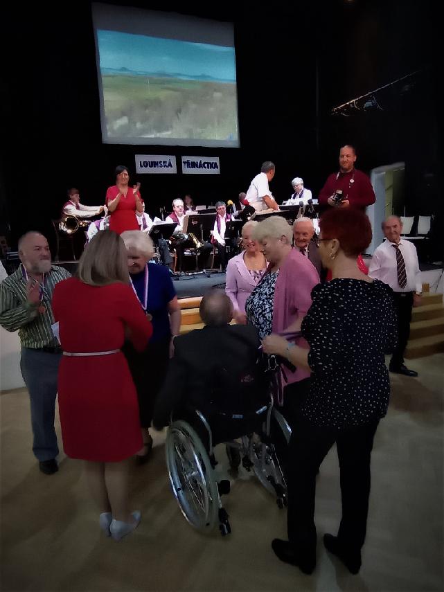 Nedělní odpoledne s Lounskou třináctkou zpestřila taneční soutěž pro seniory s názvem Senioři tančí pro radost. Z více jak stovky přítomných se pouze soutěže zúčastnilo pět tanečních páru. Soutěžilo se v šesti tancích – polka, valčík, mazurka, walz, chacha a na přání soutěžících tango. Odměnou pro vítězné páry byly medaile s poukázkou na občerstvení v místě konání akce.  Soutěž měla velký ohlas a z nesoutěžících vzešel návrh … opakovat. Úspěšná spolupráce se známým hudebním tělesem Lounská třináctka není první. Seniory přišel pozdravit i nový lounský starosta Milan Rychtařík.